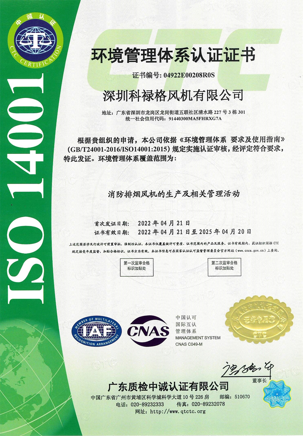 環(huán)境管理體系認(rèn)證證書(shū)